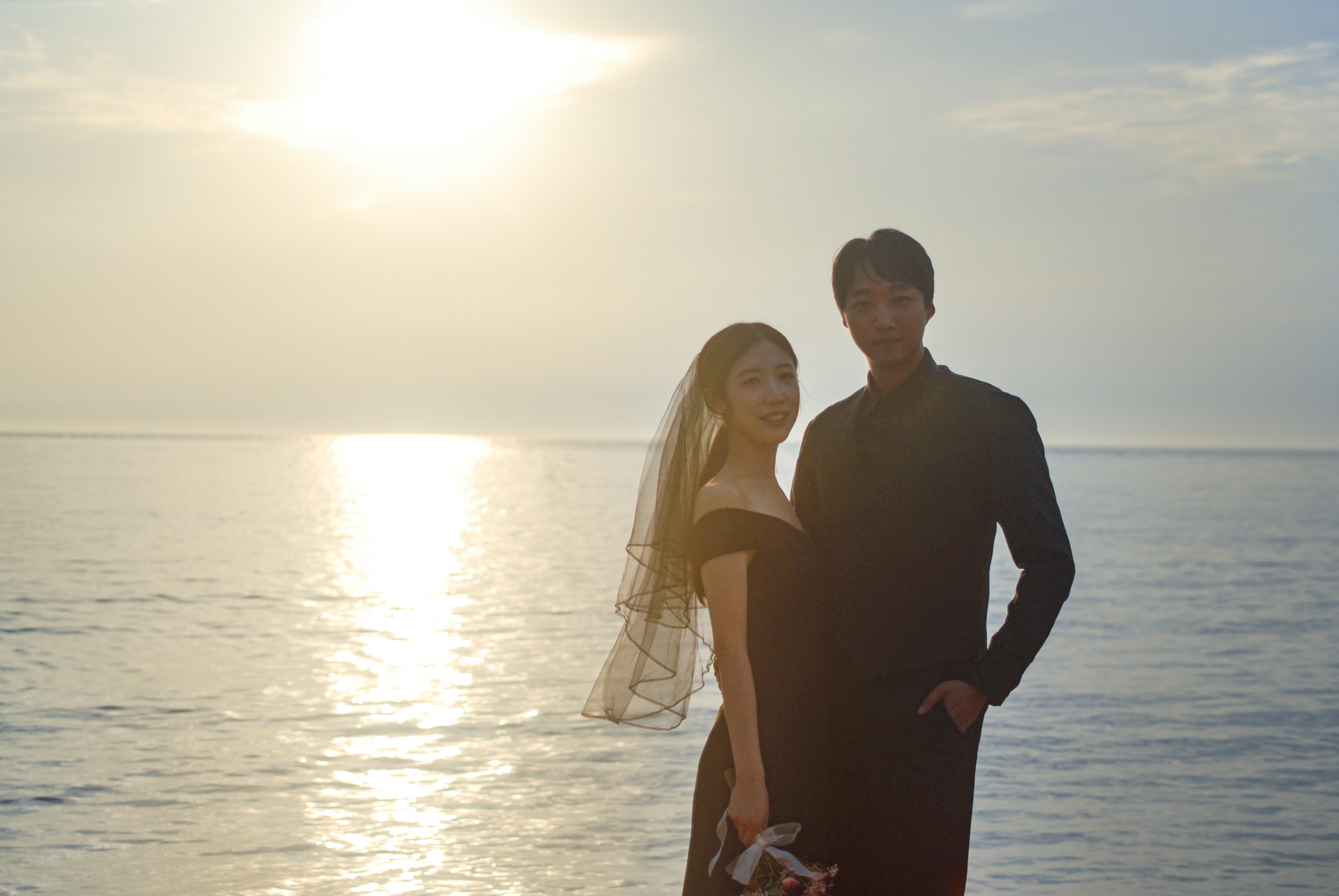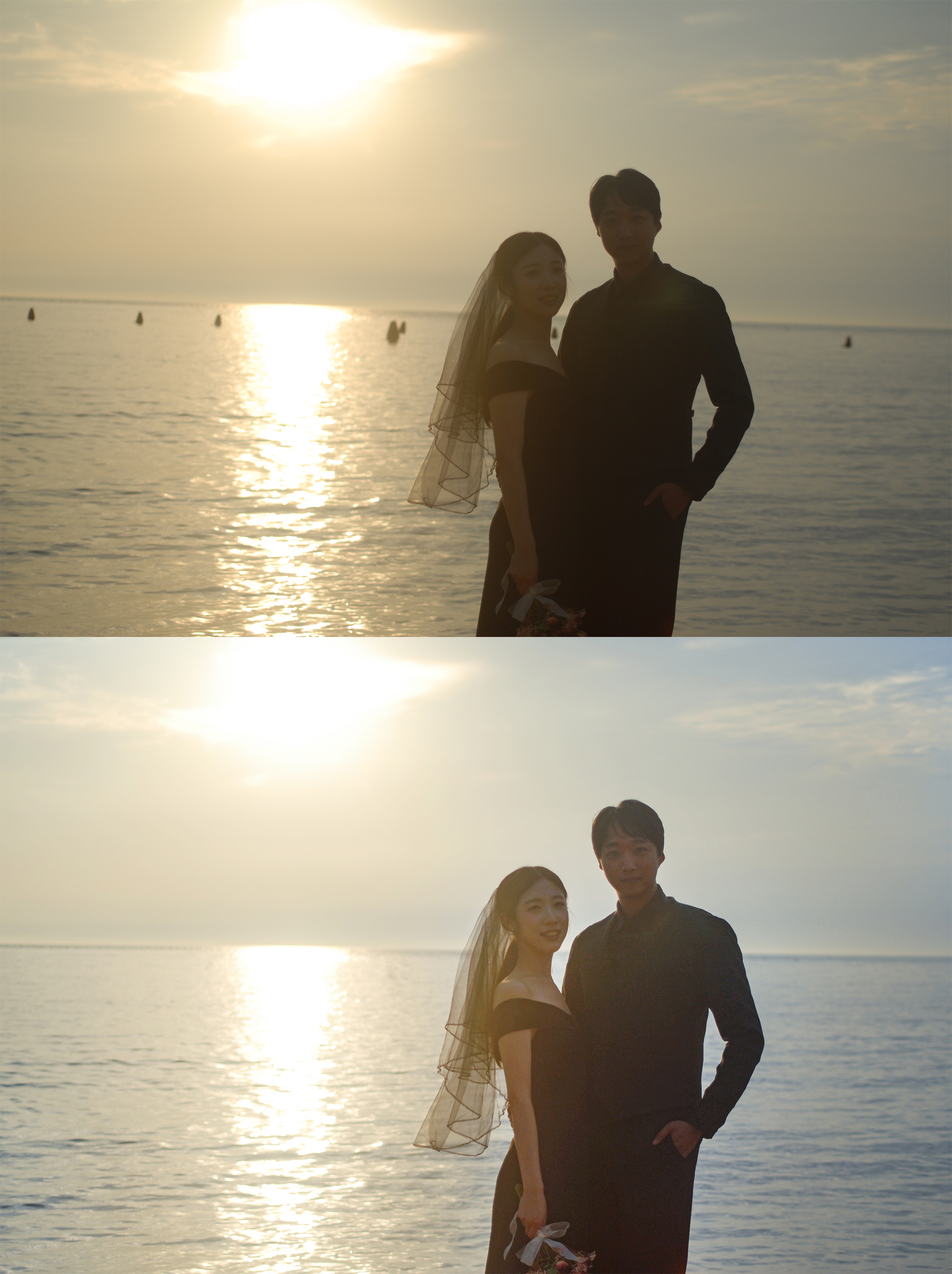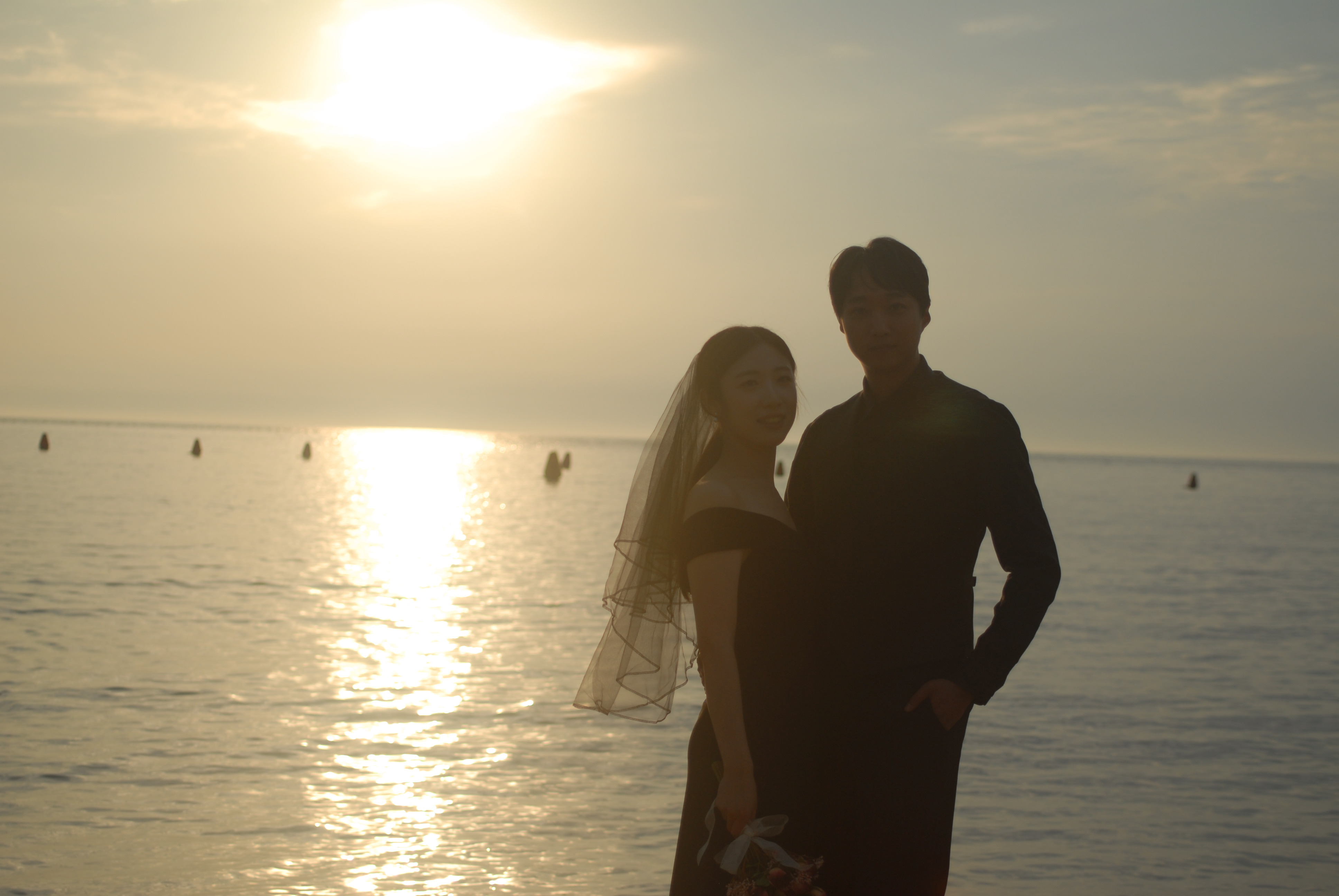 수평선쪽에 위치한 배! 웨딩사진에는 필요없죠? 이 마저도 지워드렸습니다~