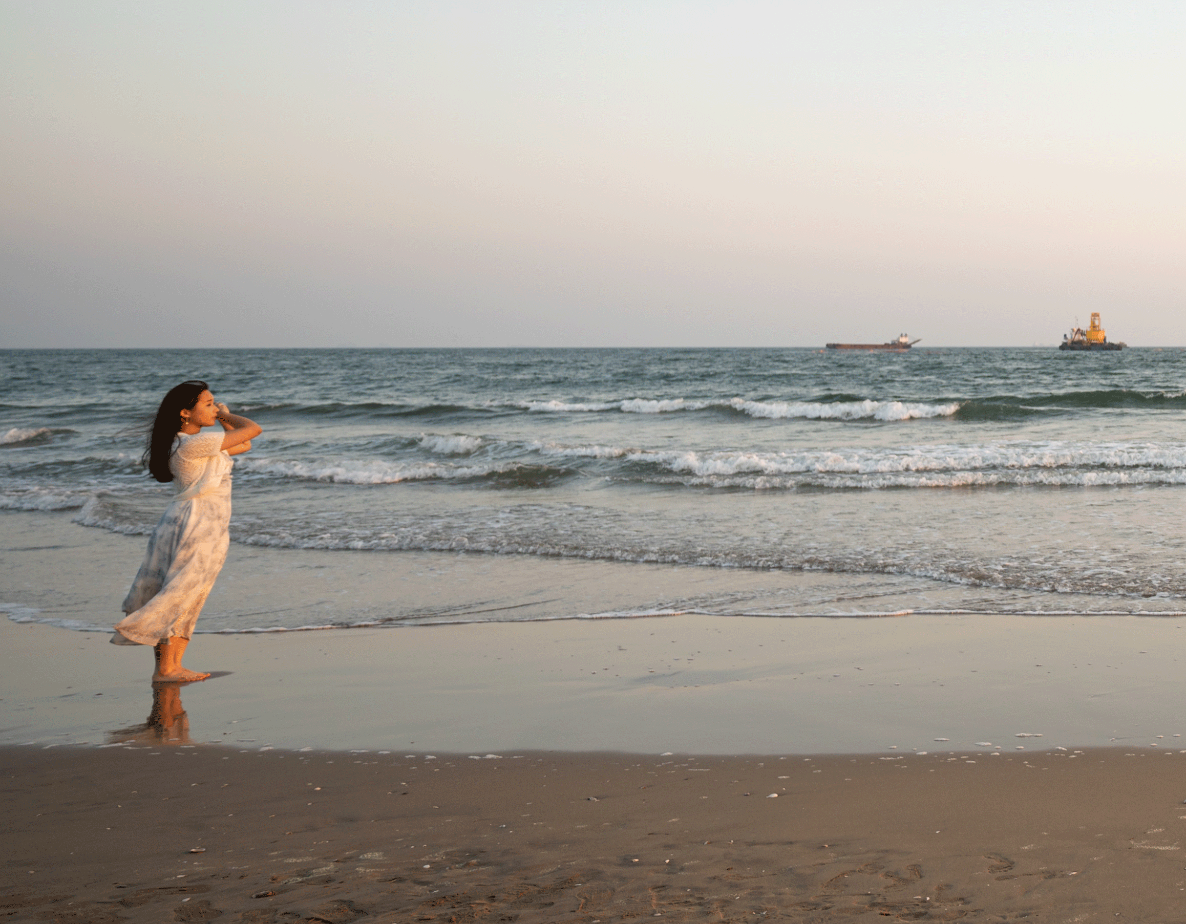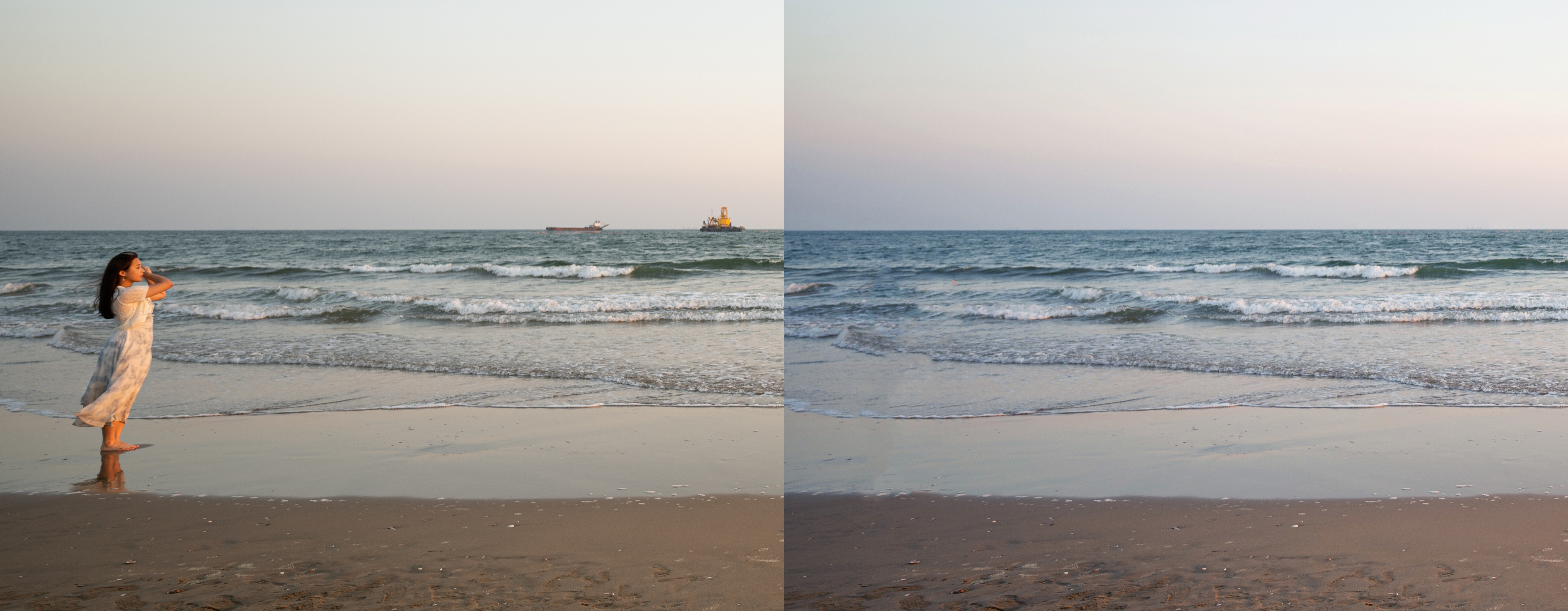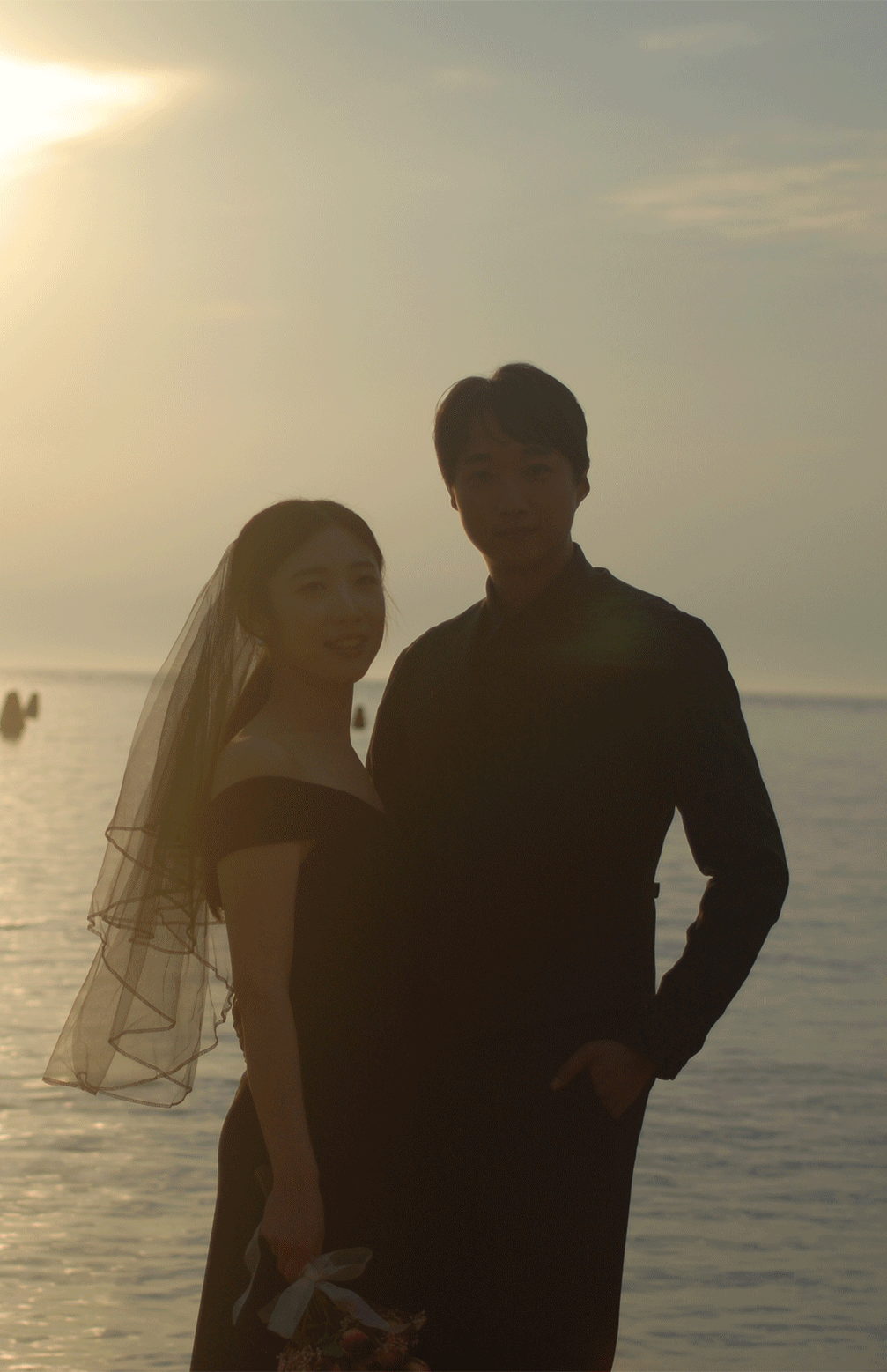수평선쪽에 위치한 배! 웨딩사진에는 필요없죠? 이 마저도 지워드렸습니다~