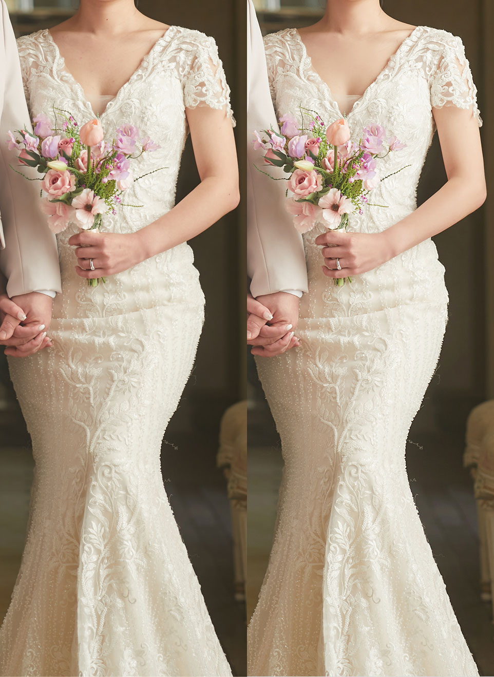모든 신부님들의 고민거리인 팔라인 보정도 매끈하게~
