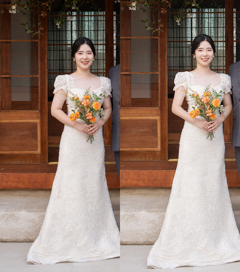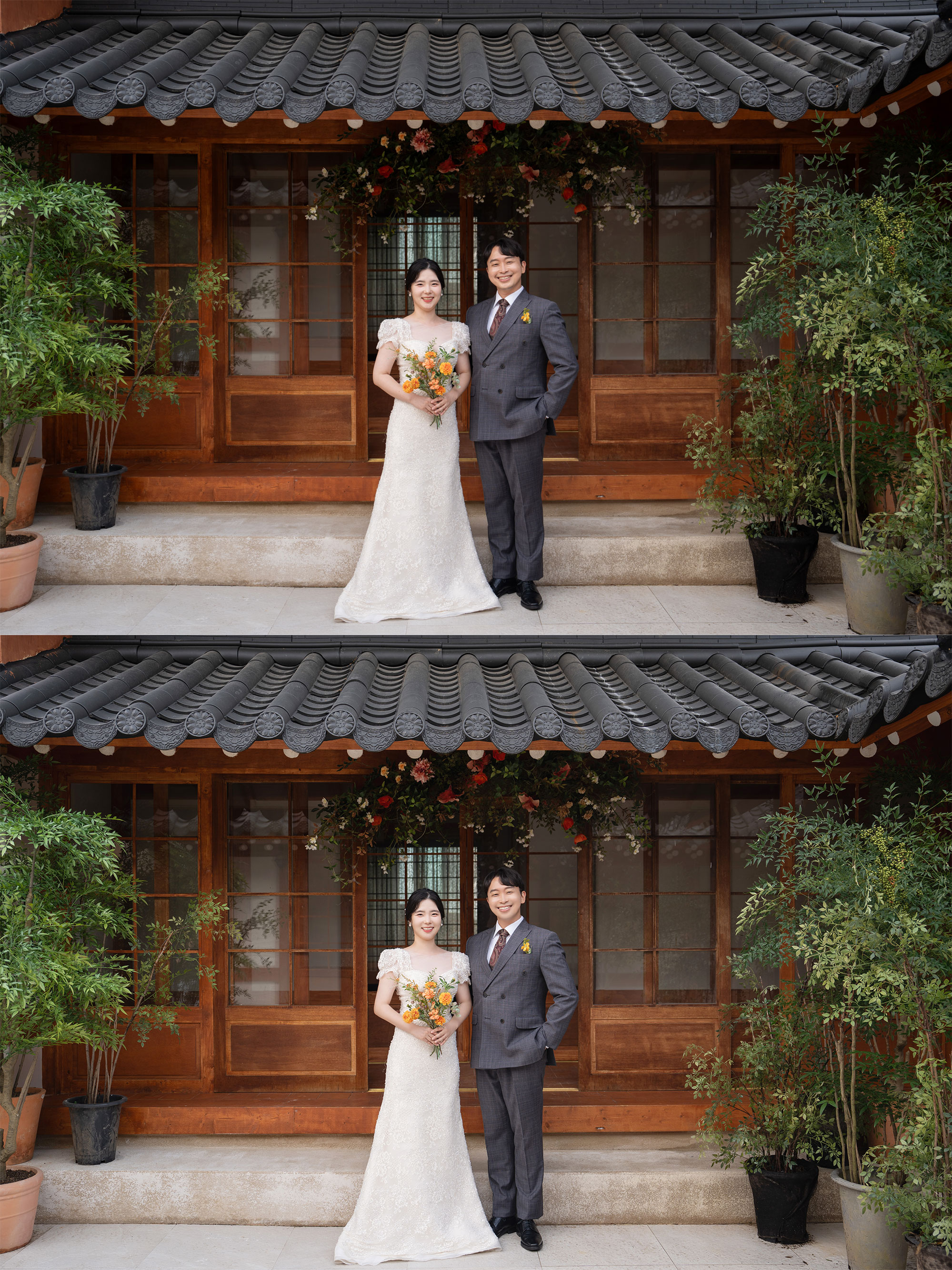 한옥과 부케의 색감에 맞춰 따뜻한 느낌의 분위기로 보정해드렸습니다~ㅎㅎ