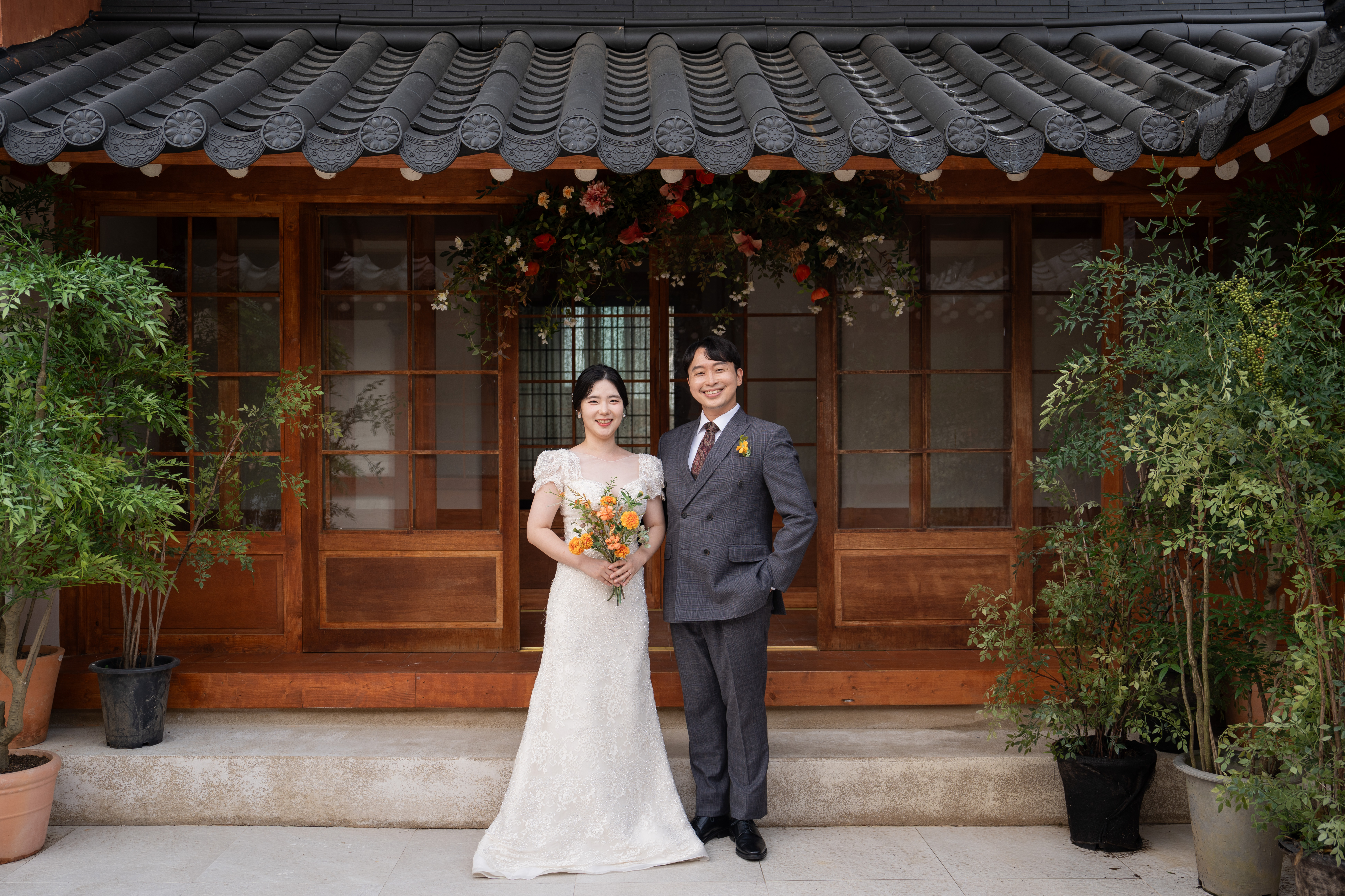 한옥과 부케의 색감에 맞춰 따뜻한 느낌의 분위기로 보정해드렸습니다~ㅎㅎ
