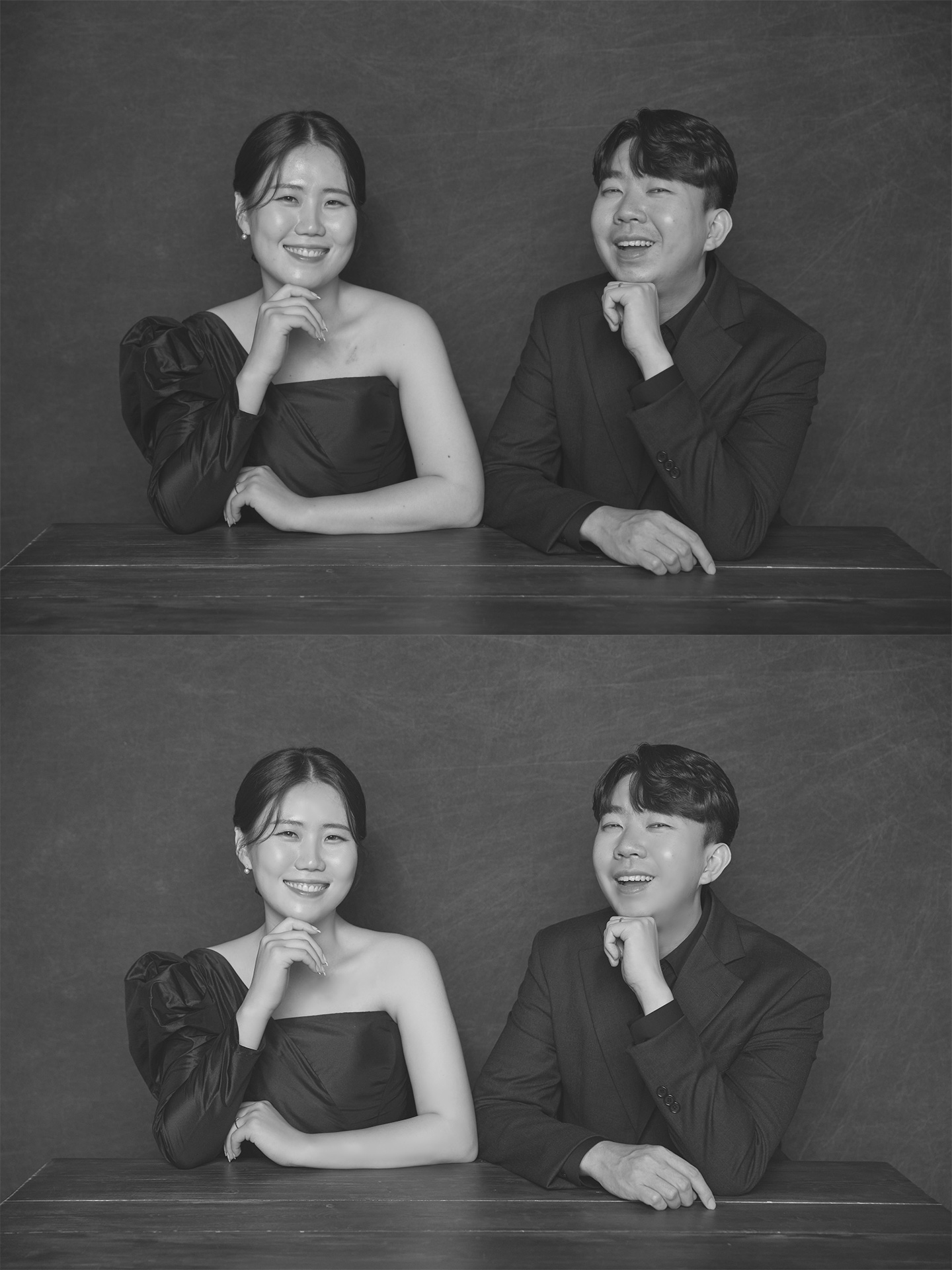 가장 첫번째 사진은 고급스러운 느낌의 흑백 웨딩사진이에요~